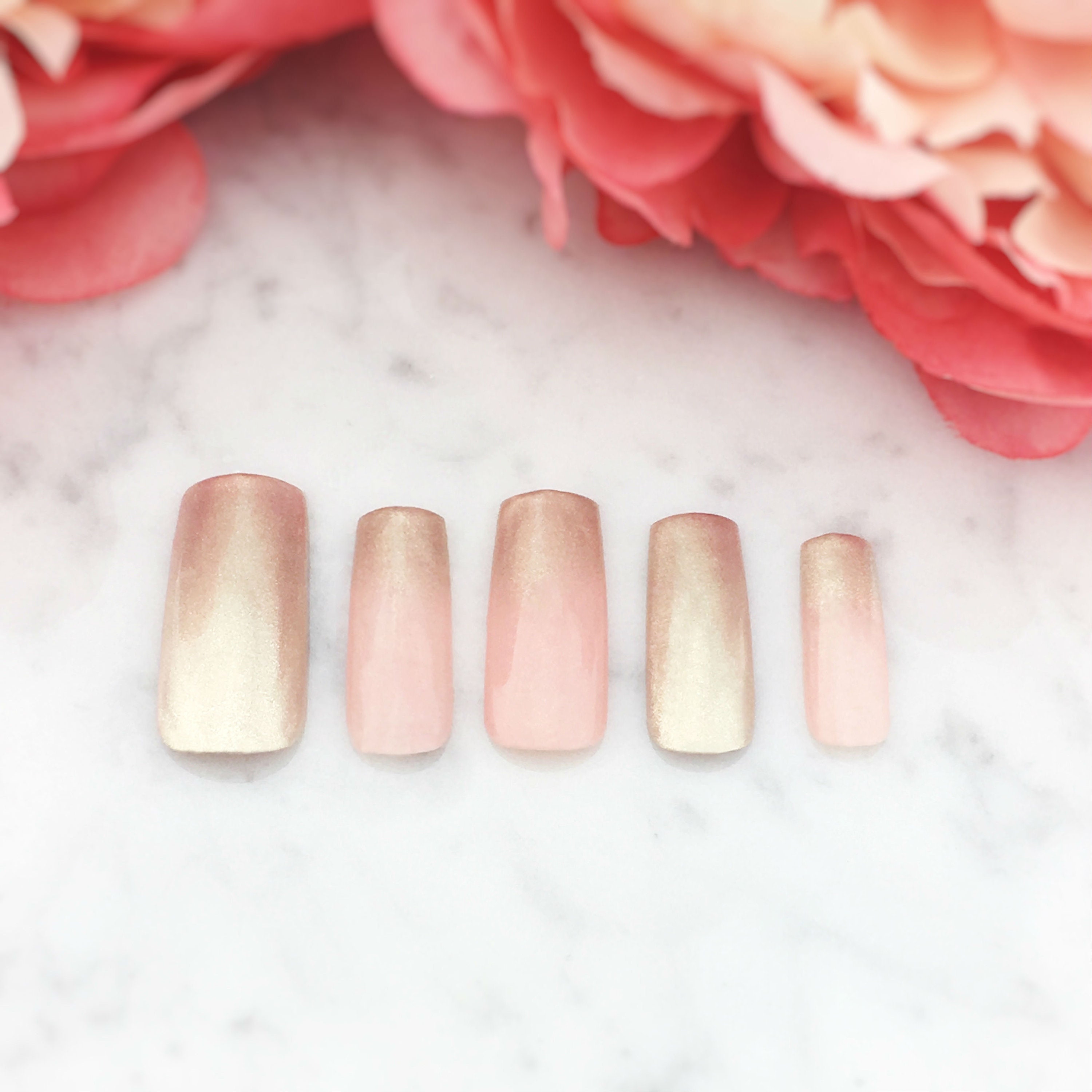 Pink And Gold Nails Gold Chrome Nails Chrome Tip Nails Etsy